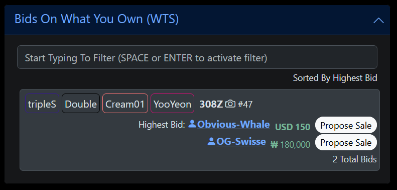 Thus sellers in this system are largely the passive party. You don't even really need to offer/price your items if you want, you can just sit back and see what the demand is like then you initiate at your leisure. This should also work out better for consumers because people who may not have thought about selling may reconsider if they see what the demand is like for stuff they were originally planning on holding.